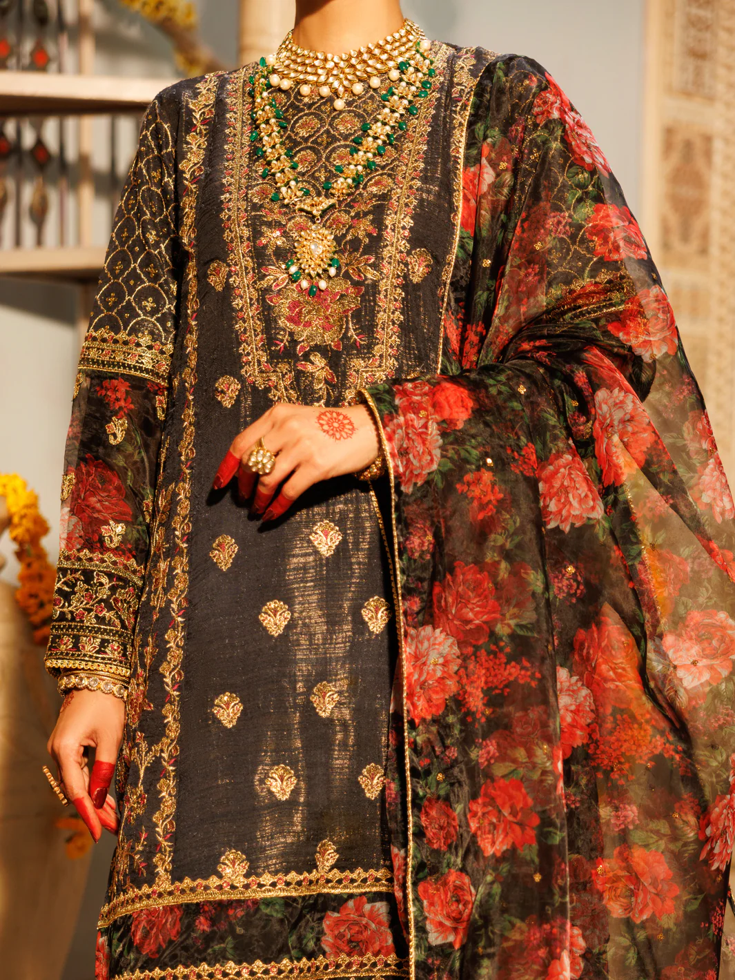 -70%BLACK MESURI NET 3PC STITCHED | AL-3PS-LS-551/FB-551A—