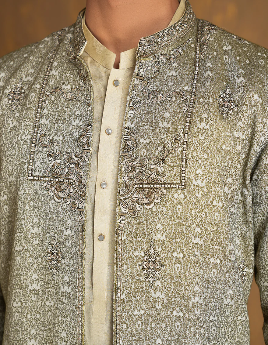 A formal men's blended kurta is the epitome of understated elegance, blending traditional aesthetics with contemporary flair through its refined cuts, luxurious materials, and intricate detailing, making it a distinguished choice for formal gatherings and cultural ceremonies.