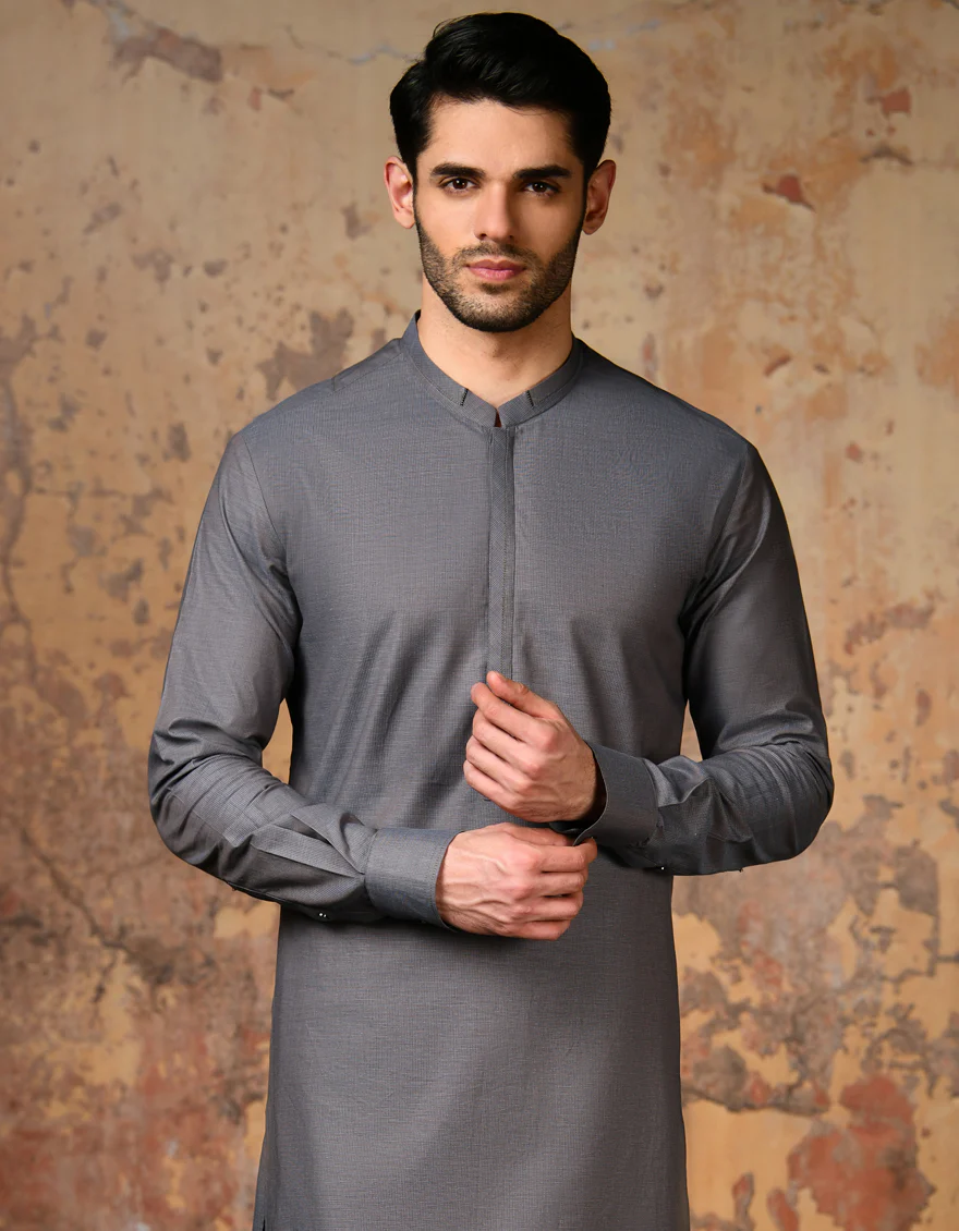 Crafted with simplicity and elegance in mind this grey blue cotton casual kameez shalwar ensuring a timeless and versatile garment.
