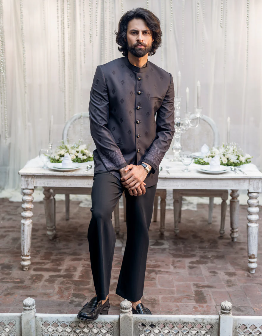 CHARCOAL GREY SUITING PRINCE COAT | JJPJ-48115/S24/JJ9260-FL