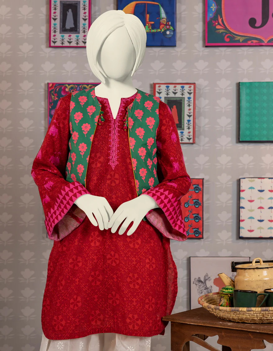 YELLOW JACQUARD KURTI | JYGK-W-JWT-US-23-4017 FB/KD-ORANGE
